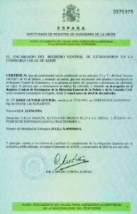 Eventuell aktuelle Wohnsitzbescheinigung (falls sich die Adresse, die in der Residencia steht, geändert hat). (EMPADRONAMIENTO – vom Ayuntamiento)